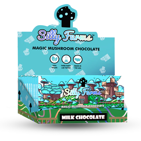 Experience the purest form of chocolate with Silly Farms’ MILK CHOCOLATE Classic. This luxurious treat combines the rich, creamy taste of premium milk chocolate with a subtle touch of Amanita Muscaria Muscimol extract for a truly unique and enchanting flavor profile.