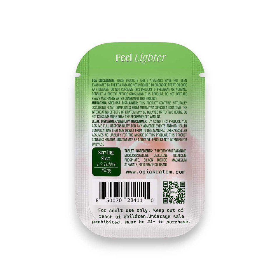 Ingredients:7-Hydroxymitragynine, Microcrystalline Cellulose, Dicalcium Phosphate, Silicon Dioxide, Magnesium Stearate, Food Grade colorant