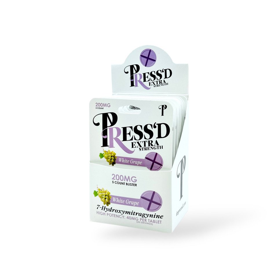 Experience the trusted quality and powerful effects of Press’D 7-Hydroxymitragynine Extra Strength Tablets White Grape—a delicious and effective way to support your well-being.