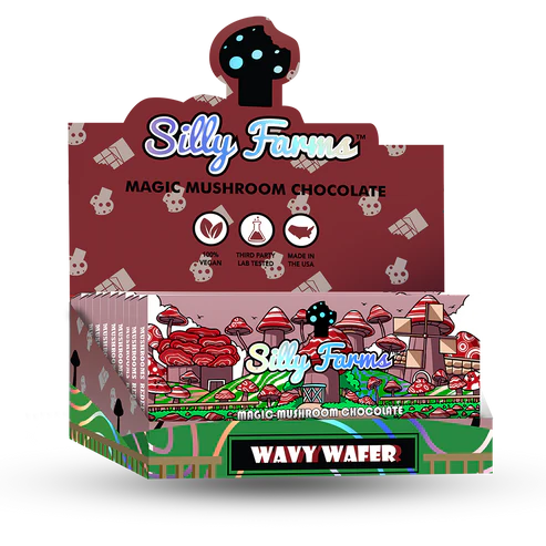 Experience the ultimate chocolatey indulgence with Silly Farms’ WAVY WAFER. This delectable treat combines the satisfying crunch of crispy wafers with the rich, creamy taste of milk chocolate. Infused with the mysterious essence of Amanita Muscaria Muscimol extract, WAVY WAFER offers a truly unique and unforgettable experience.